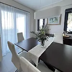 Endless View Villa - Verga Kalamata biedt een patio en een balkon, strijkfaciliteiten en airconditioning, evenals mediavoorzieningen zoals een TV en een flatscreen TV met satellietzenders. Het interieur bestaat uit een bank en een bureau, evenals een stenen open haard en geluiddichte ramen. Er zijn 3 badkamers met een apart toilet en een douche. Er zijn ook een haardroger en badlakens voor uw comfort.